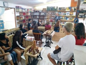 Num segundo momento, conversamos em roda sobre as experiências lúdicas vividas na visita, relacionando com a prática profissional do público visitante.